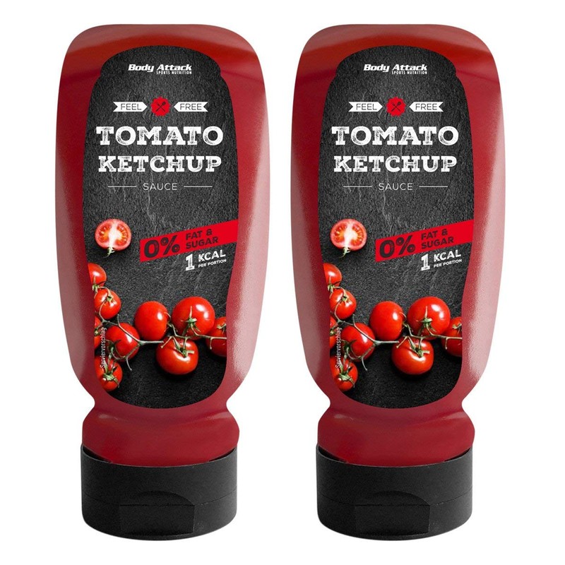 Body Attack Grill Sauce Ketchup 2x 320ml / 2x 32 Portionen, vegane kalorienarme Sauce, wenig Fett & Zucker, laktosefrei, ideal zum Grillen, perfekt für jede Diätphase, Made in Germany