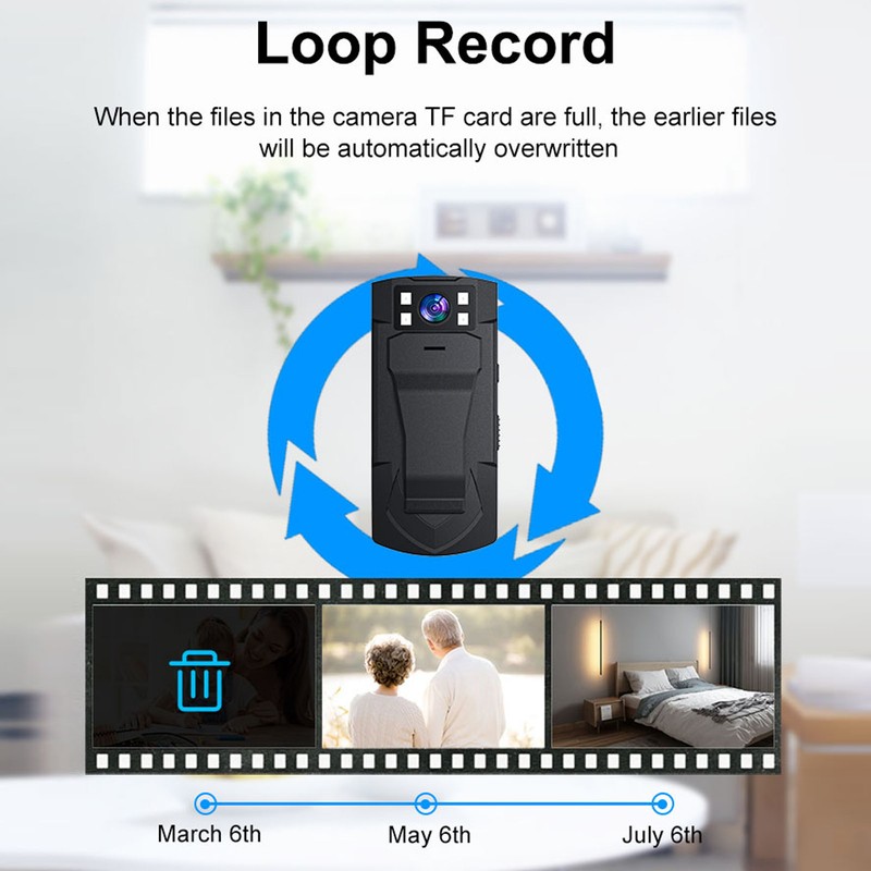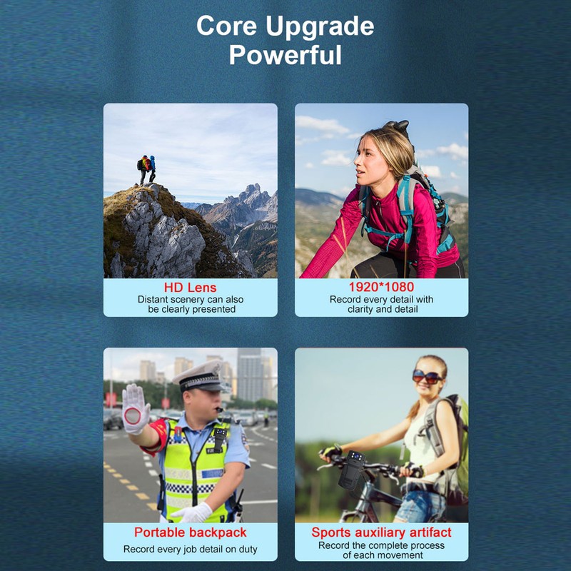 1、PORTABLE AND AUTOMATIC DETECTION: The body camera is designed with a back clip, which can be easily hung on the bag, pocket, etc., making recording more convenient. When the motion detection function is enabled, the image in the moving object lens will be automatically captured by the camera 2、LARGE APERTURE AND ADJUSTABLE: Body cam supports 140° wide angle video shooting, and the tailored lens with large aperture can reach every corner and no longer worry about the blind field of viewing. The lens can be rotated 180°, flexible and free adjustment, to meet a variety of situations 3、INFRARED NIGHT VIEWING LIGHT: The body camera will automatically fill light in dark light to break the constraints of ambient light, so that the video recording picture is clear and the light and shade are appropriate 4、1080P INDEPENDENT VIDEO RECORDING: Open the video recording quickly with one key, the camera picture quality is exquisite, the color is realistic, the audio and video synchronization is real record scene. 1080P high resolution and high frame number, so that every detail is more clear and delicate 5、APPLICABLE SCENARIO: Body cam built in 1200mAh large capacity battery, sustainable record 500 minutes, not to let slip any good moment, can be used for family life records, learning records, training records, running sports cycling records, express food delivery work records