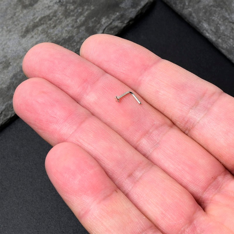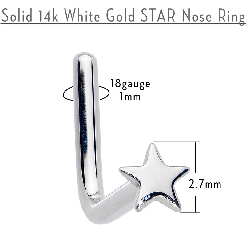 - Gauge size18 gauge nose stud ring; hand crafted 14k white gold 18g nose jewelry