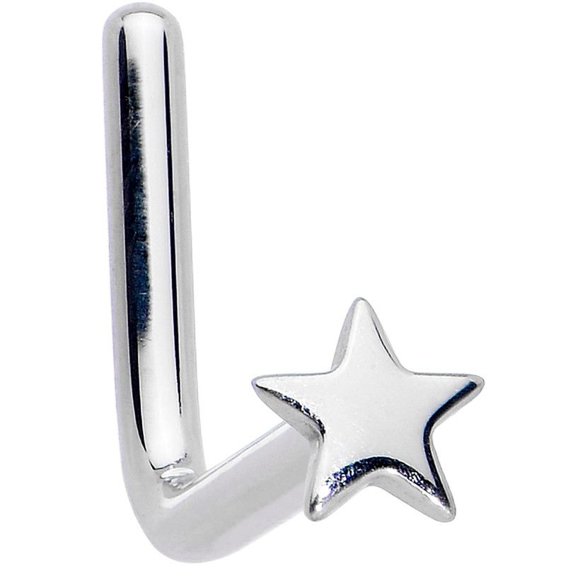 Body Candy 14k White Gold Star L-Shaped Nose Ring 18 Gauge