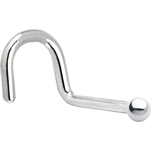 Body Candy Solid 14k White Gold 1.5mm Ball Right Nose Stud Screw Ring 18 Gauge 1/4"