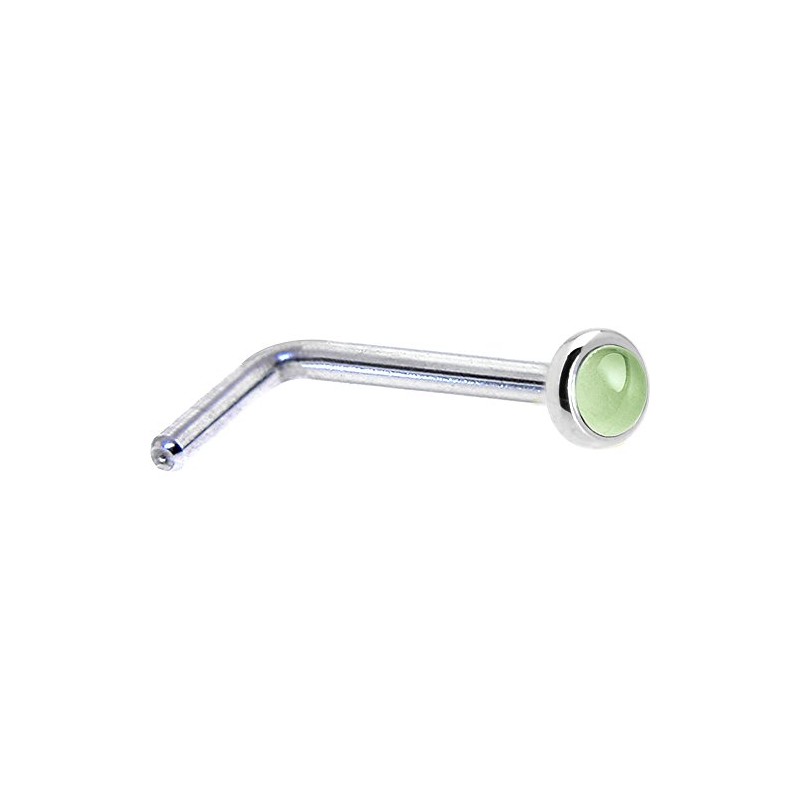 - Nose ring with 2 millimeter natural peridot gemstone in bezel setting