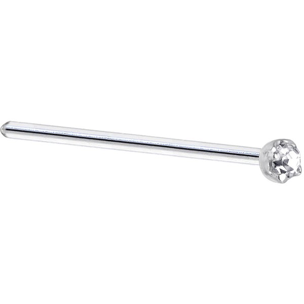 Body Candy Solid Platinum 1.5mm (0.015 cttw) Genuine Diamond Straight Fishtail Nose Stud Ring 20 Gauge 17mm