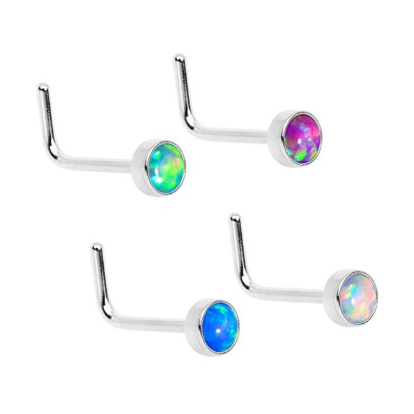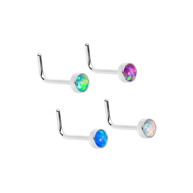 Body Candy Steel Multi 3mm Synthetic Opal Press Fit L Shaped Nose Ring 4 Pack 20 Gauge 1/4"