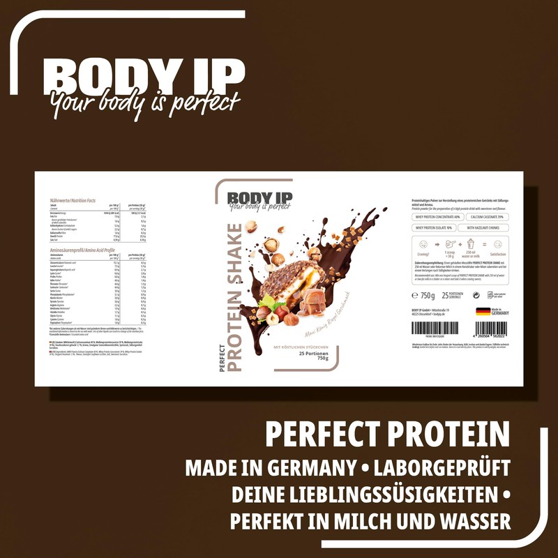 - Perfect Protein: The Perfect Protein from BODY IP is your favourite sweet without consuming sugar, 100% favourite taste and 100% function. It is a very high-quality protein shake and tastes incredibly creamy and delicious.