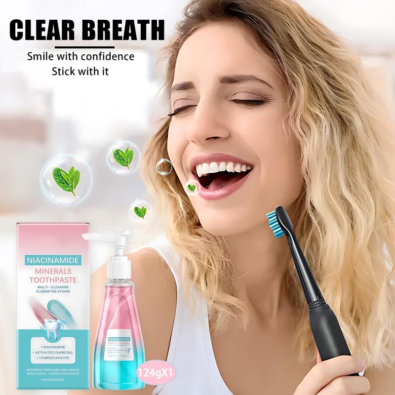 - 【Frischer Atem】Niacinamide toothpaste kann den mund gründlich reinigen, geruchsmoleküle im mund entfernen und dabei helfen, lange zeit einen frischen atem zu bewahren. Egal ob es der erste atemzug nach dem aufstehen am morgen oder der reinigungsvorgang am ende des tages ist,niacinamide zahnpasta kann ihnen ein angenehmes atemerlebnis verschaffen und ihnen mehr selbstvertrauen bei der kommunikation mit anderen geben.