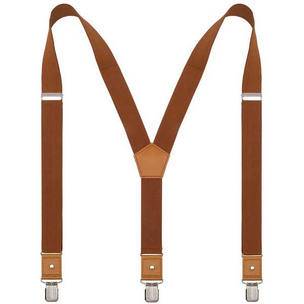 ZXEROYM Suspenders for Men Adjustable Y Back Elastic with Strong Clips Brown