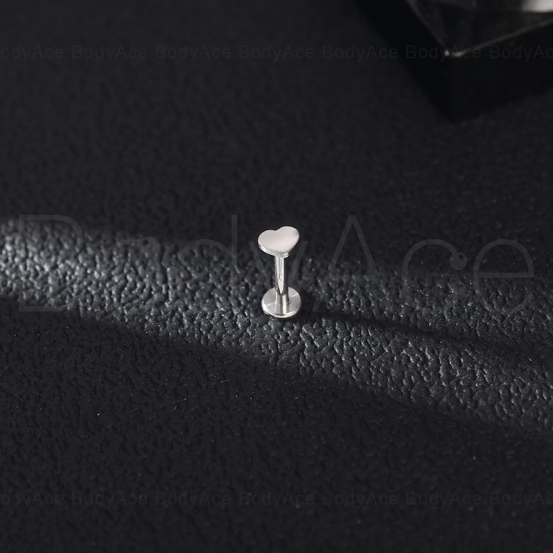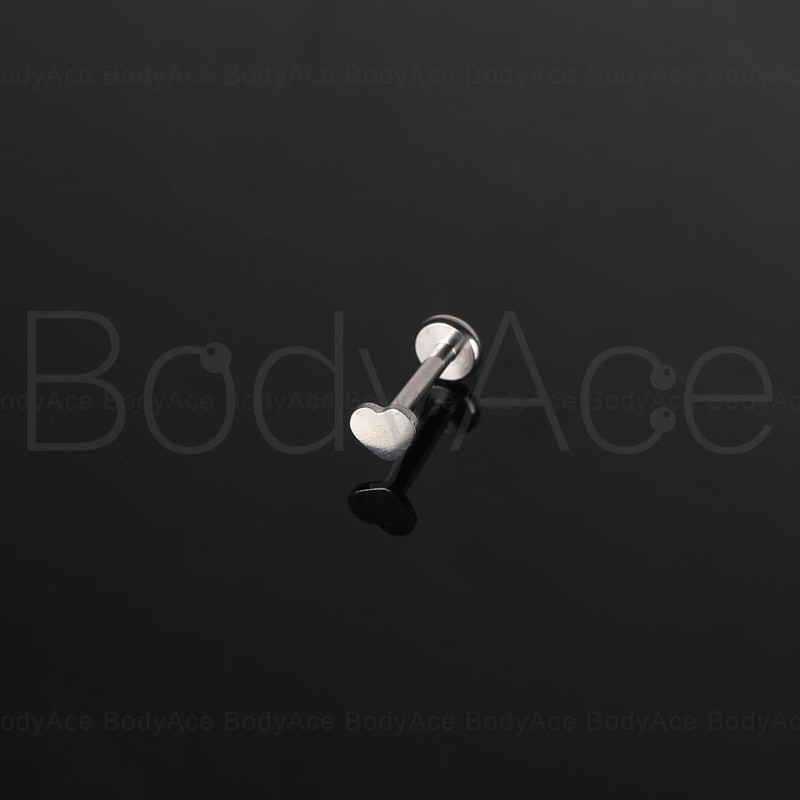 BodyAce ASTM F136 Titanium Lip Bar Labret Rings, 16G Flat Back Earring with Piercing Taper, Internally Threaded Cartilage Piercing Tragus Studs Body Jewellery [Heart]