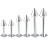 - WHAT WILL BE DELIVERED? - You will receive 3 pairs 6 Pieces of 16g 1.2mm surgical stainless steel labret piercing jewelry in set, one pair of 1/4 inch (6mm) length with 3mm cones, one pair of 5/16 inch (8mm) length with 3mm cones and one pair of 3/8 inch (10mm) length with 4mm cones.
