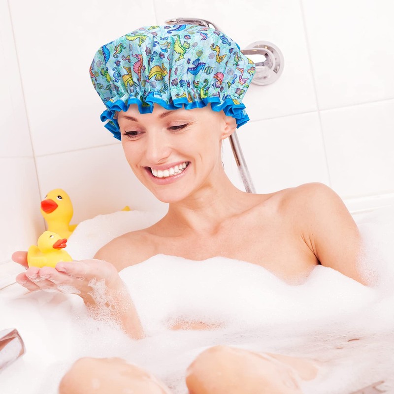 - The Seahorse shower cap is comfortable to wear and ensures your hair is kept completely dry in the bath or shower.