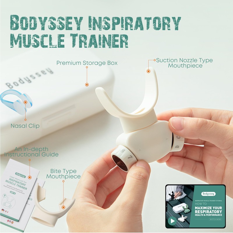 Introducing the Bodyssey Breathing Trainer Enhance your daily routine with the Bodyssey Breathing Trainer, a premium exercise tool designed to improve your breathing pattern and wellness and support a healthier lifestyle. Made from high-quality silicone, this compact and ergonomic device effectively and comfortably boosts your overall wellness.