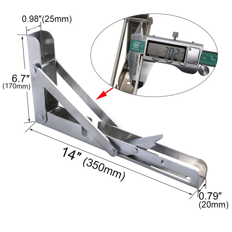 - Made of high-quality brushed 304 stainless steel, sturdy and durable, build to resist daily scratches, corrosion and tarnishing. Max. load approximately 200KG/ 440lb; Size: 350mm x 170mm(14" x 6.7"); Thickness: approximately 3mm.
