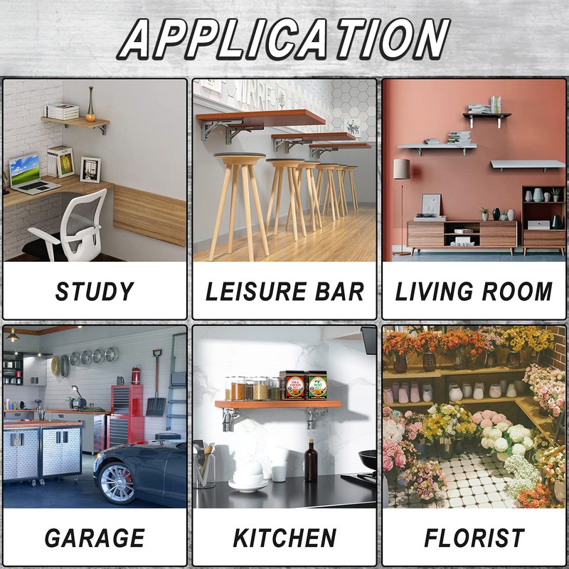 - Better lifestyle:It can make your home more clean and tidy after you place a piece of wood board on this Brackets. Meanwhile, it can bring artistic feeling to your house. You can use this bracket to build a bookshelf to your bedroom or build a workbench in your garage and whatever else you want to do.