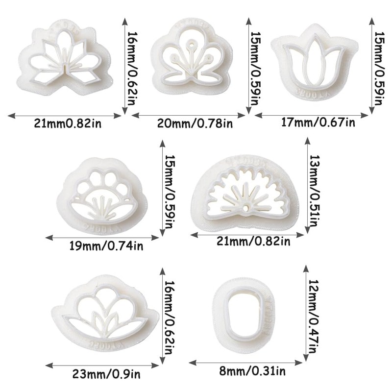 1. Seven geometric flower clay earring cutters can be used to make seven different earrings, resulting in different combinations. We can choose two of them to make a pair of earrings that we like.