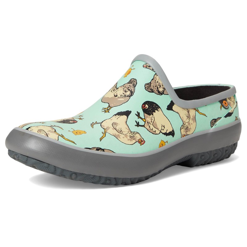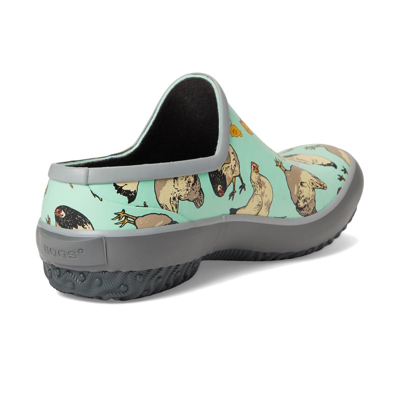 BOGS Women's Patch Clog Chickens Rain Boot, Aqua Multi, 8