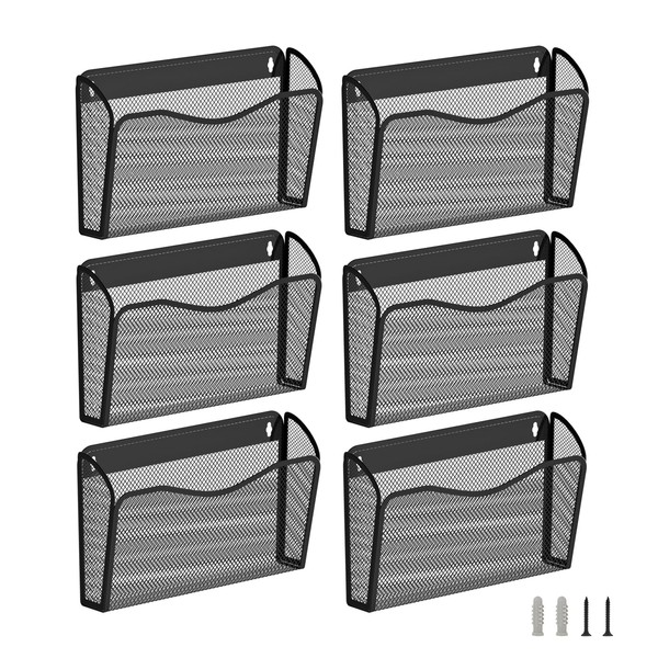 BOHDK Wall File Organizer, Mesh Hanging File Organizer, Home Office Organization and Storage, 6 Single Pockets Document Magazine Rack