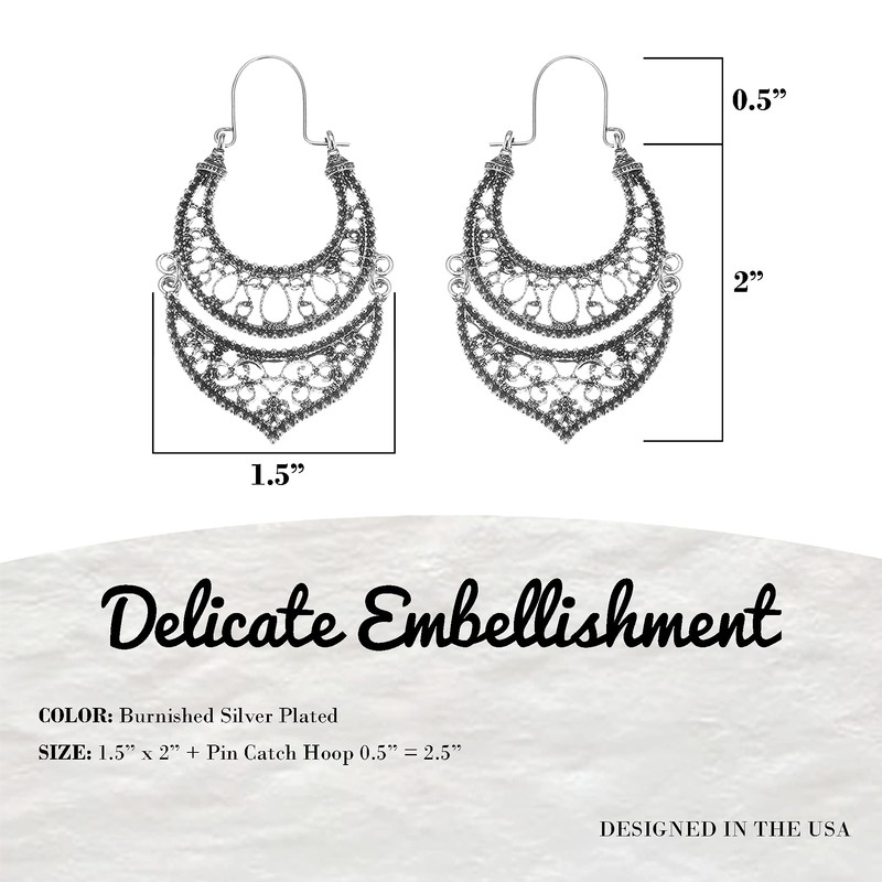 - ✅ BOHEMIAN BOHO FILIGREE HOOP EARRINGS FOR WOMEN – Beautiful and delicately crafted filigree cut out designs give these earrings an elegantly bohemian look. You will love the detailing and intricacy of the design. These versatile earrings can be worn with any outfit.