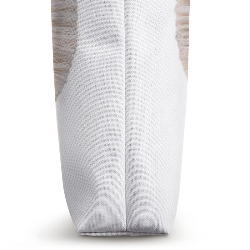 - 16” x 16” bag with two 14” long and 1” wide black cotton webbing strap handles.