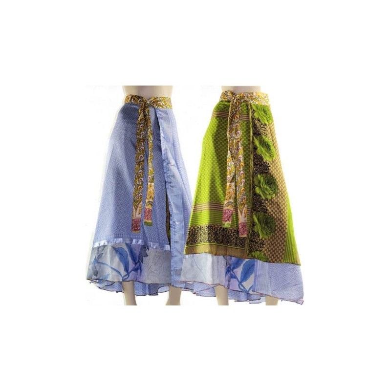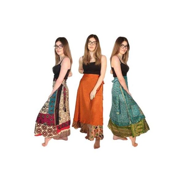Boho Sari Silk Long Wrap Skirts - Set of 3 Multi