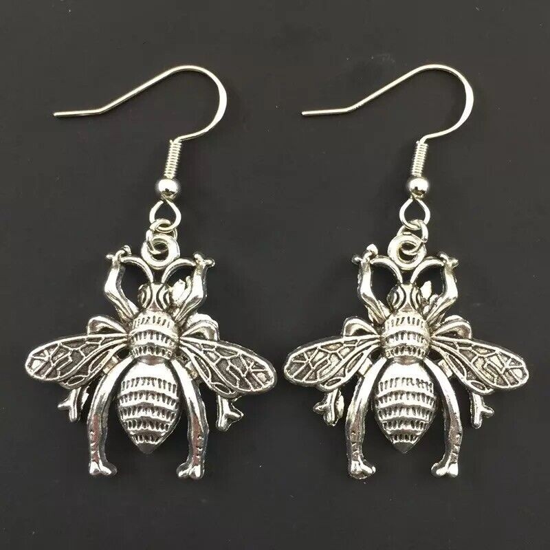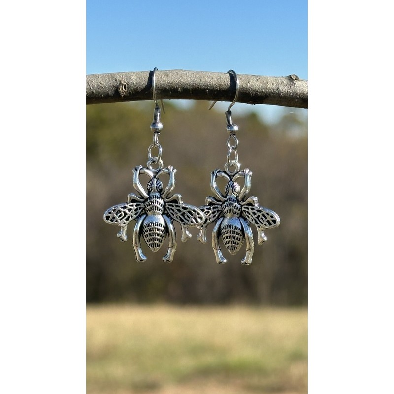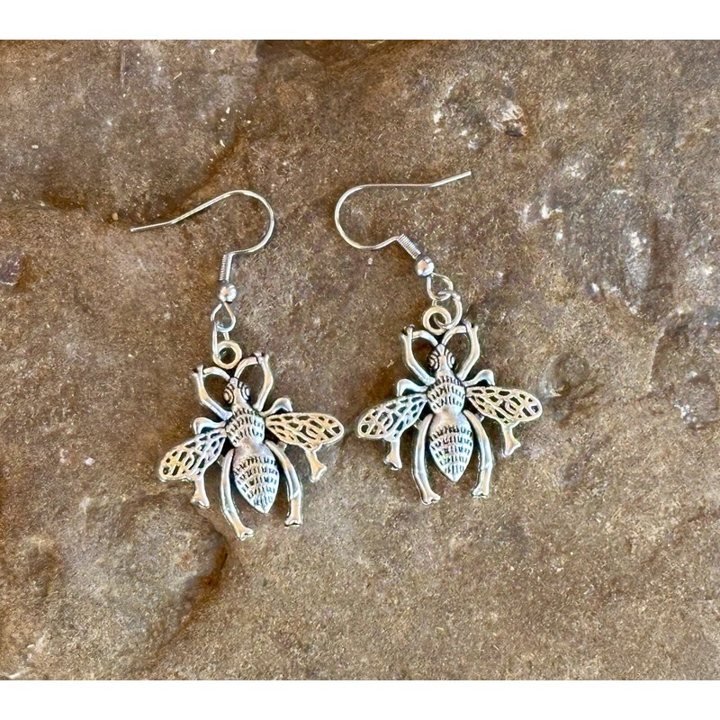 Boho Silver Honey Bee, Nature, Insect, Boho Earrings, 1”, New