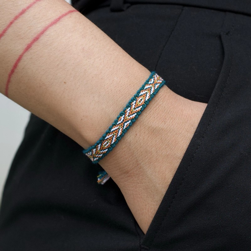 Boho Woven Bracelet - Emerald Green - Arrow Pattern, Woven Friendship Bracelet