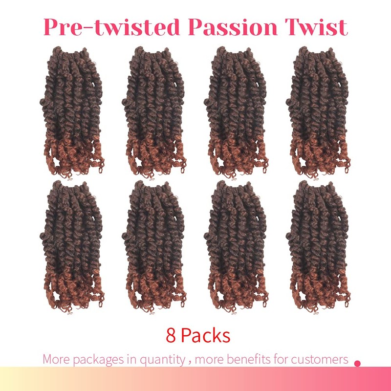BOHOBABE Crochet Passion Twist Hair Pretwisted 10 Inch Short Pre-looped Passion Twist Crochet Braiding Hair 8 Packs (T350)