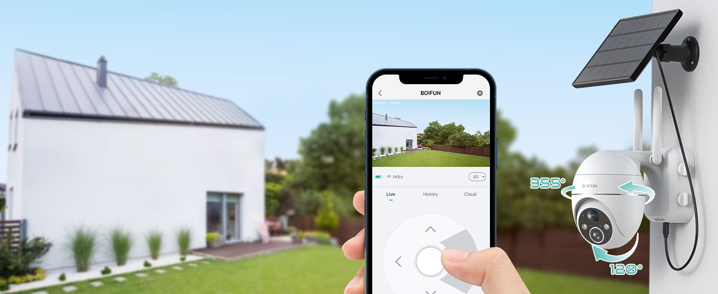 Boifun Outdoor 2K WiFi Solar Security Camera 360° Wireless Home Battery PTZ CCTV System