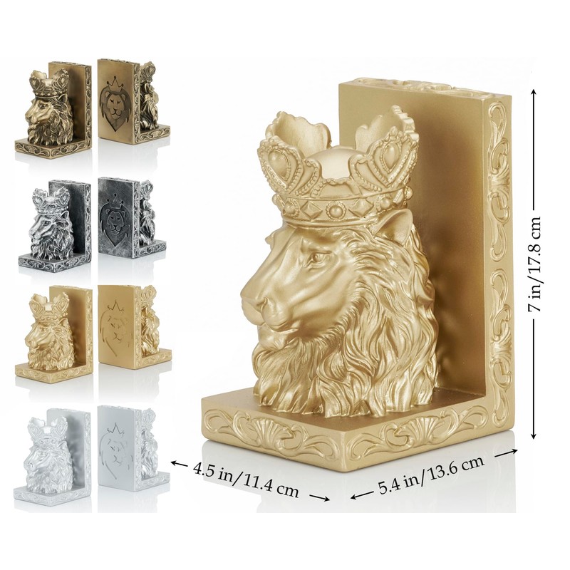 - Vibrant Color Options for Every Style: Available in six stunning colors—gold, silver, antique gold, antique silver, black, and white—these lion bookends are designed to stand out on your bookshelf. Their vibrant hues not only enhance your decor but also make them a stylish addition that complements any aesthetic