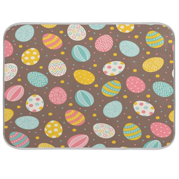 Bolaz Easter Eggs Polka Dot Dish Drying Mat, Absorbent Drying Pad Dish Mat Large Kitchen Mat, 18" x 24"
