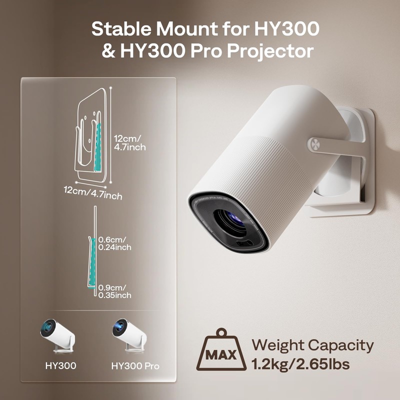 - 1. 【Compatible all HY300&HY300Pro Projector Models】ERAN, Alwtniet, MAGCUBIC, LYNCAST, CHICDAZE and other HY300&HY300 Pro Projector. ***Tips: if using for other mini projectors but not HY300&HY300 Pro models : please make sure projector base Thickness between 0.24inch(0.6cm)-0.35inch(0.9cm), projector base diameter <4.7inch(12cm), Projector weight ≤2.65lbs(1.2KG) .