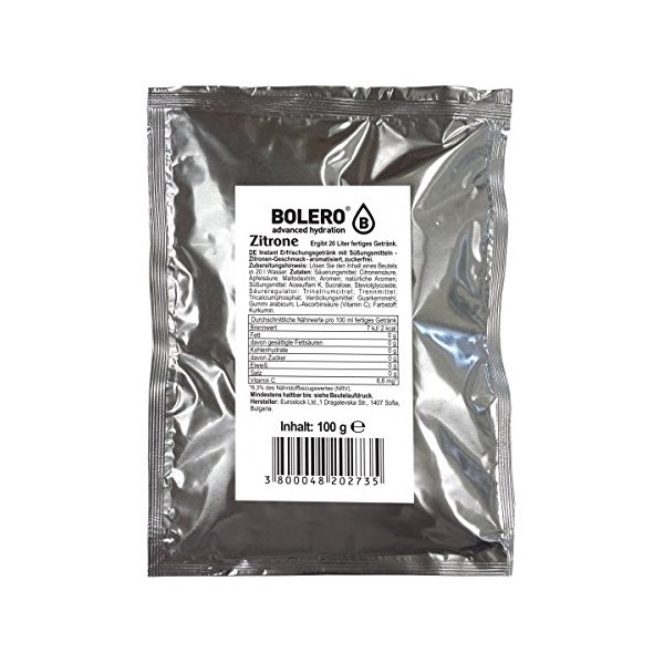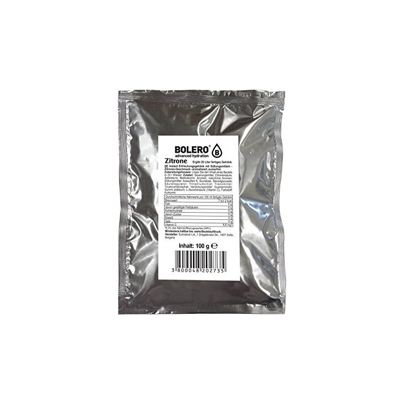 Bolero drinks (9 g). Mix the contents of a bag with 1.5 - 3 litres of water. Bolero sticks (3 g). The contents of a stick with approx. Mix 500 - 750 ml of water.