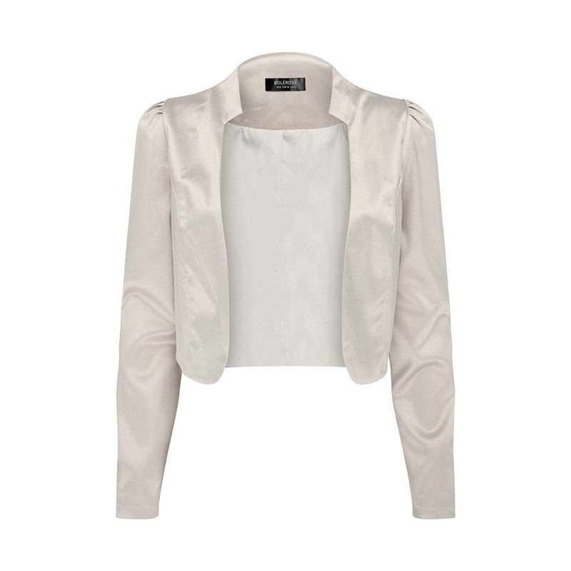 Bolerose formal satin long sleeve Bolero jacket - Silver, size: xxl