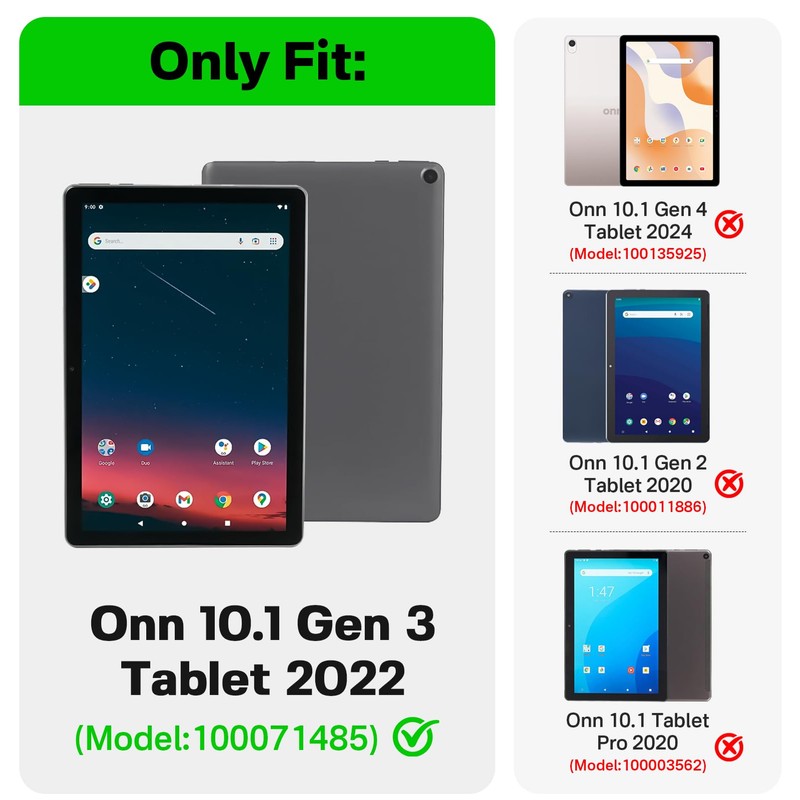 - [For Onn 10.1 Gen 3 2022 Tablet] - Please confirm your tablet model ! Specifically designed for Onn 10.1 Tablet Model 100071485 ( 2022 Generation 3 ). NOT compatible with Onn 10.1 Tablet Pro Model 100011886 or any other tablets