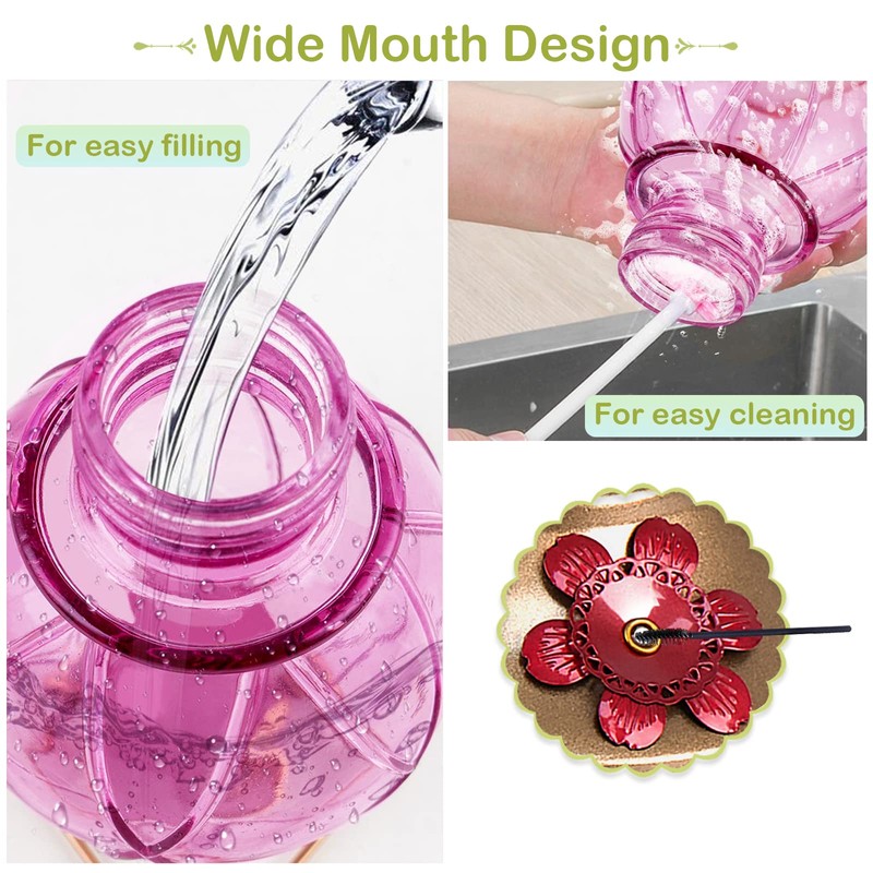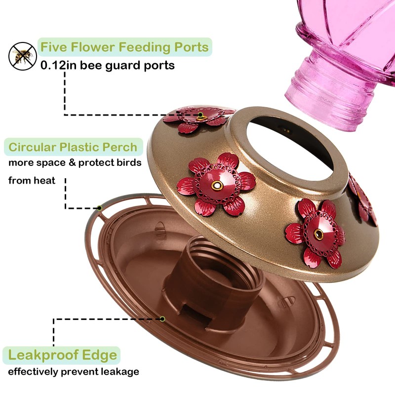 - Fácil de llenar y limpiar - Simplemente desenrosque el recipiente de la base para limpiarlo o rellenarlo. Tenga en cuenta, mientras que el recipiente de vidrio puede ir en el lavavajillas, se recomienda lavar su alimentador colibrí a mano con jabón sin perfume.