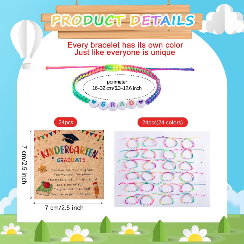 - 💖 【Perfect Graduation Keepsake Set】 Celebrate the little graduates with this delightful set! It includes 24 beaded graduation bracelets and 24 motivational wish cards, each in bright colors and playful designs. A memorable gift to commemorate this important milestone and make their graduation extra special.