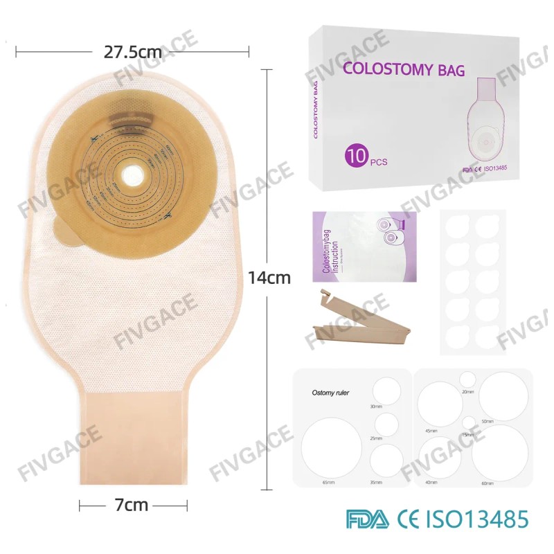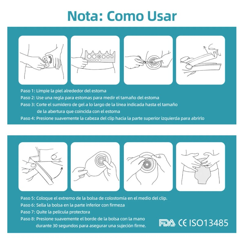 Incluye: sistema de cierre autoadhesivo de 30 piezas, tarjeta de medidas del estoma (admite una variedad de tamaños de 20 mm a 65 mm y se puede cortar libremente), pegatinas de cierre de orificios, guía de bienvenida y un amable servicio de atención al cliente.