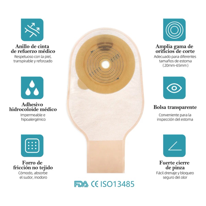 Bolsa Colostomia Recortable Adulto 20-65mm 10 Pcs Drenable