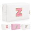 Bolsa de maquillaje con parche inicial personalizada, bolsa de chenilla con cierre, Color1-Rosa-Z