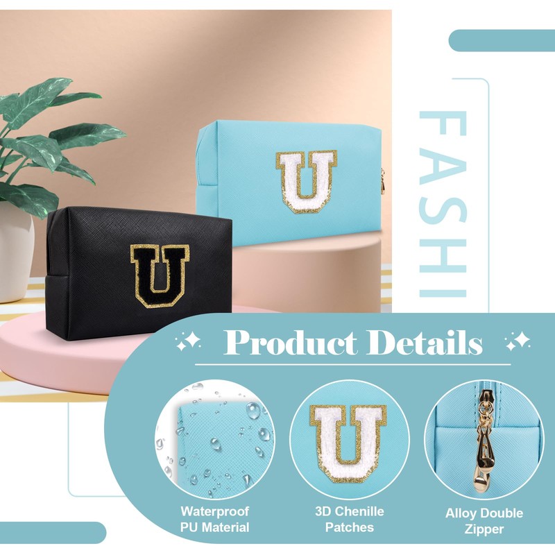 - Diseño único: bolsa de cosméticos preparada con parche de chenilla dorado brillante, moderno y agradable al tacto. El bonito parche con patrón de letras tiene un fuerte estilo personalizado, que está cosido en esta bolsa de cosméticos, haciendo que la bolsa de almacenamiento sea más llamativa y añadiendo un ambiente personalizado.