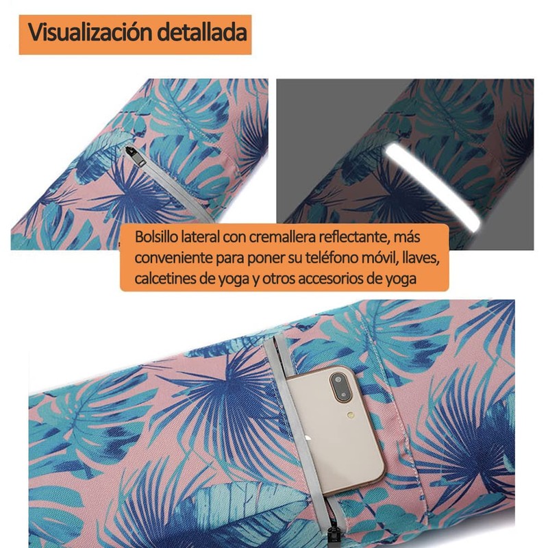 - 【Diseño práctico】La Bolsa para esterilla de yoga cuenta con un diseño con cordón que le facilita la entrada y salida rápidas. El bolsillo lateral con cremallera y banda reflectante es ideal para guardar objetos personales como el teléfono móvil, llaves, tarjetas, cartera, correa de yoga, calcetines de yoga, etc.