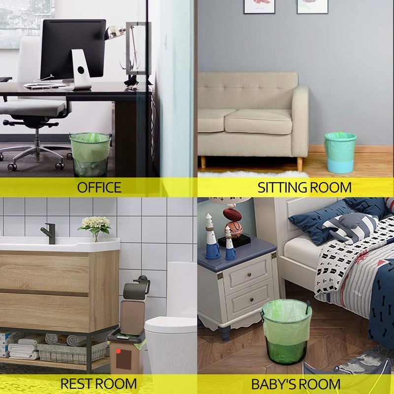 - [Reduce la contaminación blanca] Nuestras bolsas de basura pueden ser biodegradables, lo que significa que cada unidad que utilices puede ayudar a reducir la contaminación blanca que otras bolsas de basura de plástico no pueden. Hemos utilizado mucho en nuestra vida diaria, cocina, baño, sala de estar, pañales de bebé, coche, cesta de basura, etc. Cuanto más usamos, más ayuda hacemos