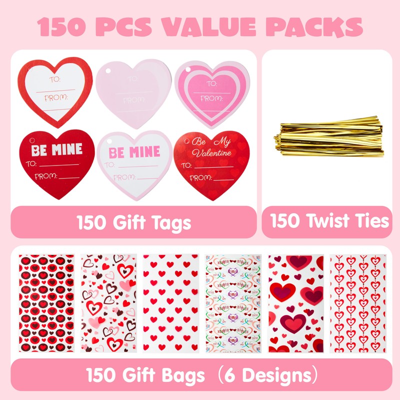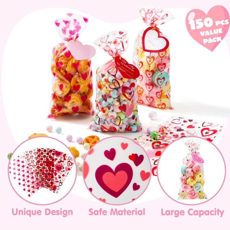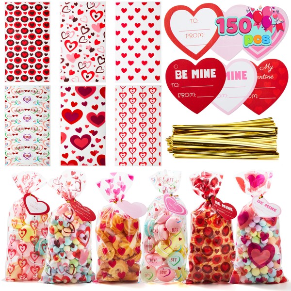 Bolsas de regalo de celofán para el día de San Valentín, 150 paquetes