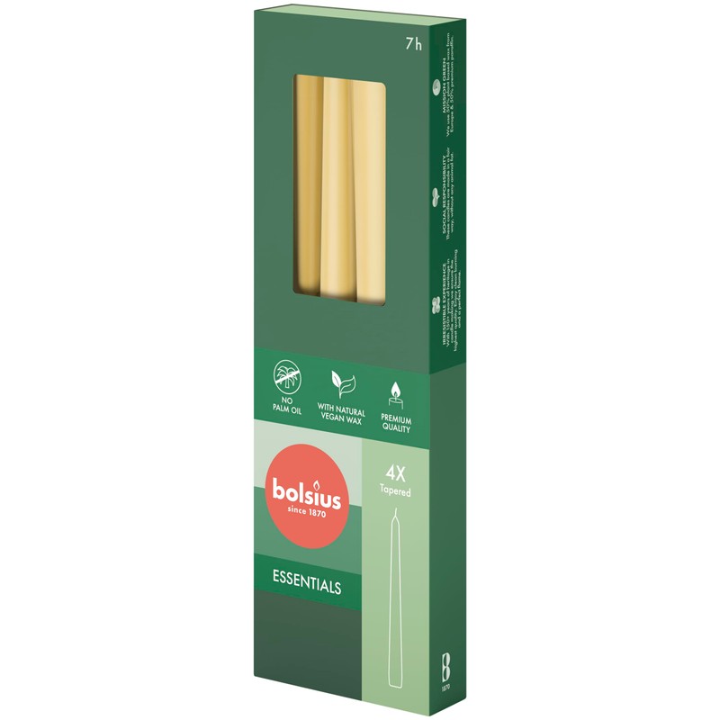Bolsius Tapered Candles - Beige - 4-Pack - 24.5 cm - Decorative Household Candles - Burning Time of 7 Hours - Unscented - 50% Natural Vegan Wax - Without Palm Oil
