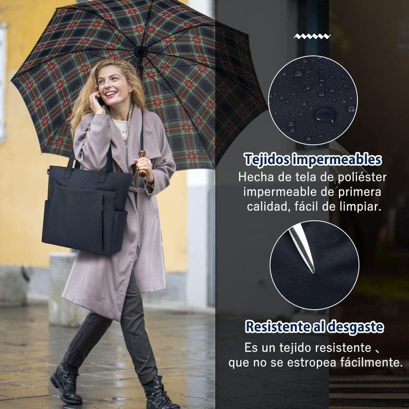 - [Amplios bolsillos]: Esta bolsa de negocios está bien provista de bolsillos. El compartimento principal tiene dos bolsillos abiertos para documentos A4 y un portátil de 15,6", y dos bolsillos con cremallera para la cartera y los documentos. También hay dos bolsillos laterales para una botella de agua, un paraguas plegable y otros objetos pequeños. Los dos bolsillos delanteros permiten guardarlos fácilmente. Con un total de ocho bolsillos, esta bolsa tiene una excelente capacidad de almacenamiento.