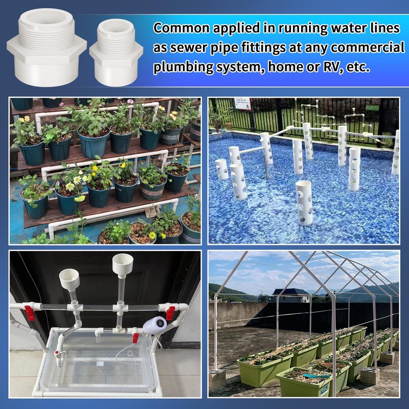 - 【PVC Outdoor Pipe Fitting】These furniture grade PVC thread pipe fittings are suitable for indoor and outdoor use; including irrigation, underground sprinkler systems, swim pools and spa, outdoor applications and cold water supply lines, etc.