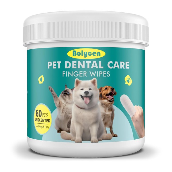 Bolycen Pet Dental Finger Wipes for Dogs & Cats - Dog & Cat Finger Toothbrush - Remove Plaque & Tartar - Freshens Breath - Dog Teeth Cleaning Wipes(1.77" Wide (60 Count), Unscented)
