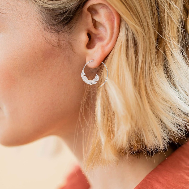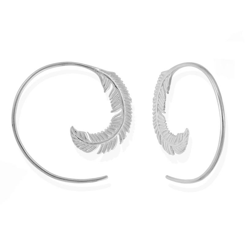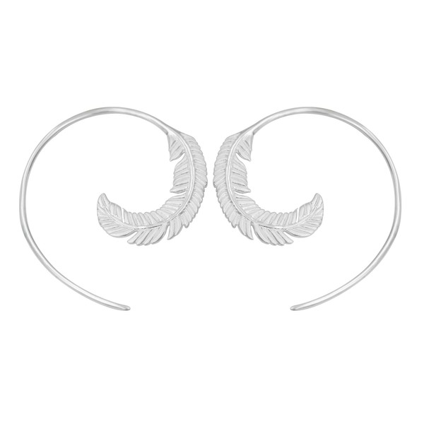 Boma Jewelry Sterling Silver Feather Matte Finish Pull Through Hoop Earrings