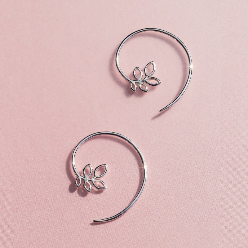 Boma Sterling Silver Leaf Pull Through Hoop Earrings - Nature lovers will fal head over heals for these delicate hoops with leaf motif. Crafted in sterling silver and includes rubber stoppers. Boma Jewelry: Guaranteed for Life. LB 4228