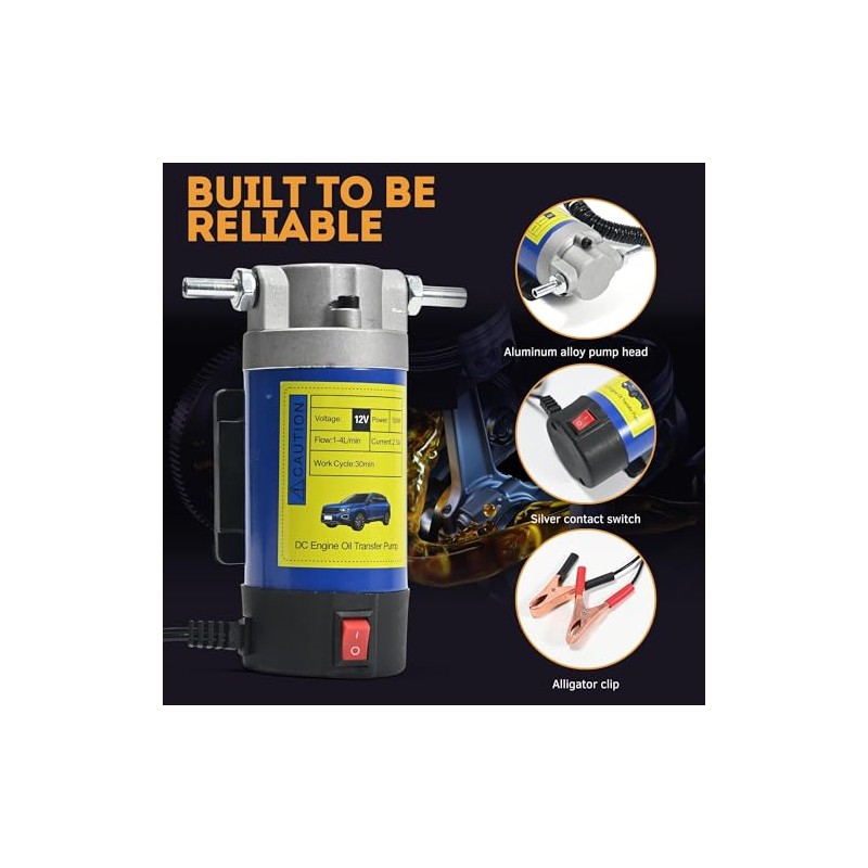 Bomba de transferencia de aceite de 12 V, bomba de cambio de aceite autocebante de 100 W, bomba de aceite de engranaje portátil, bomba extractora de aceite de motor Zikepa para barcos, automóviles,