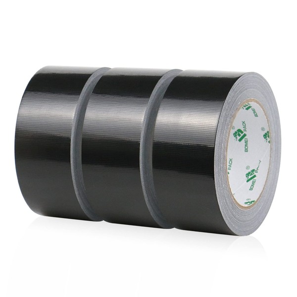 BOMEI PACK Heavy Duty Black Duct Tape, Multi-Use Easy Tear Gaffer Waterproof Cloth Tape for Repairing, Maintenance and Industrial Use, 1.88 Inch x 32.8 Yards Per Roll, 7.5mil Thick,3 Rolls
